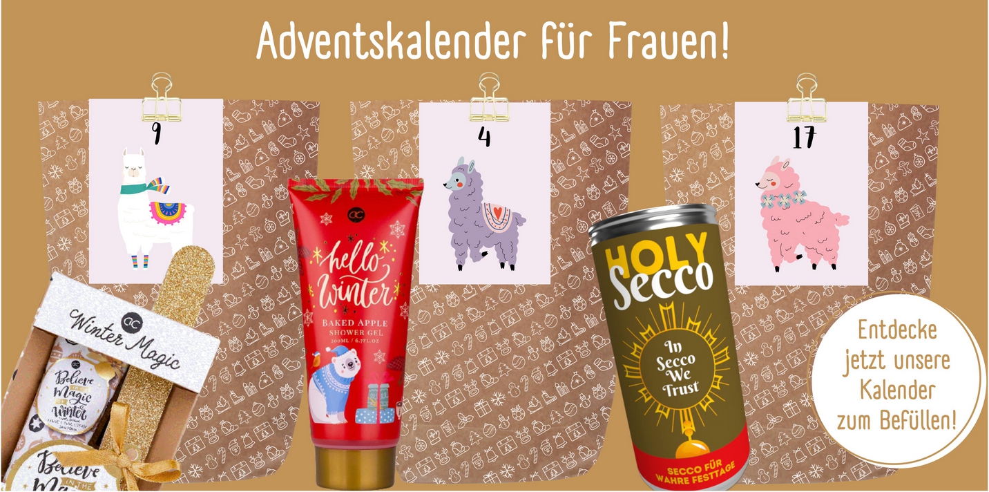 Klasse, dann möchten wir dich dabei gerne unterstützen, dass dein diesjähriges Adventskalenderprojekt ein voller Erfolg wird. Bei uns findest du alles was du zum Basteln und Befüllen eines Adventskalenders für Frauen benötigst.