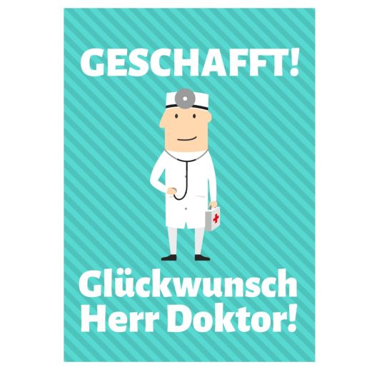 Mit diesem kleinen Kärtchen könnt ihr zum bestandenen Doktor-Titel für Männer gratulieren.