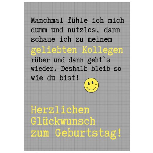 Wenn der geliebte Kollege Geburtstag hat kommt dieses Kärtchen genau richtig. Aber nur wenn euer Kollege mit ein Brise Humor ausgestattet ist.